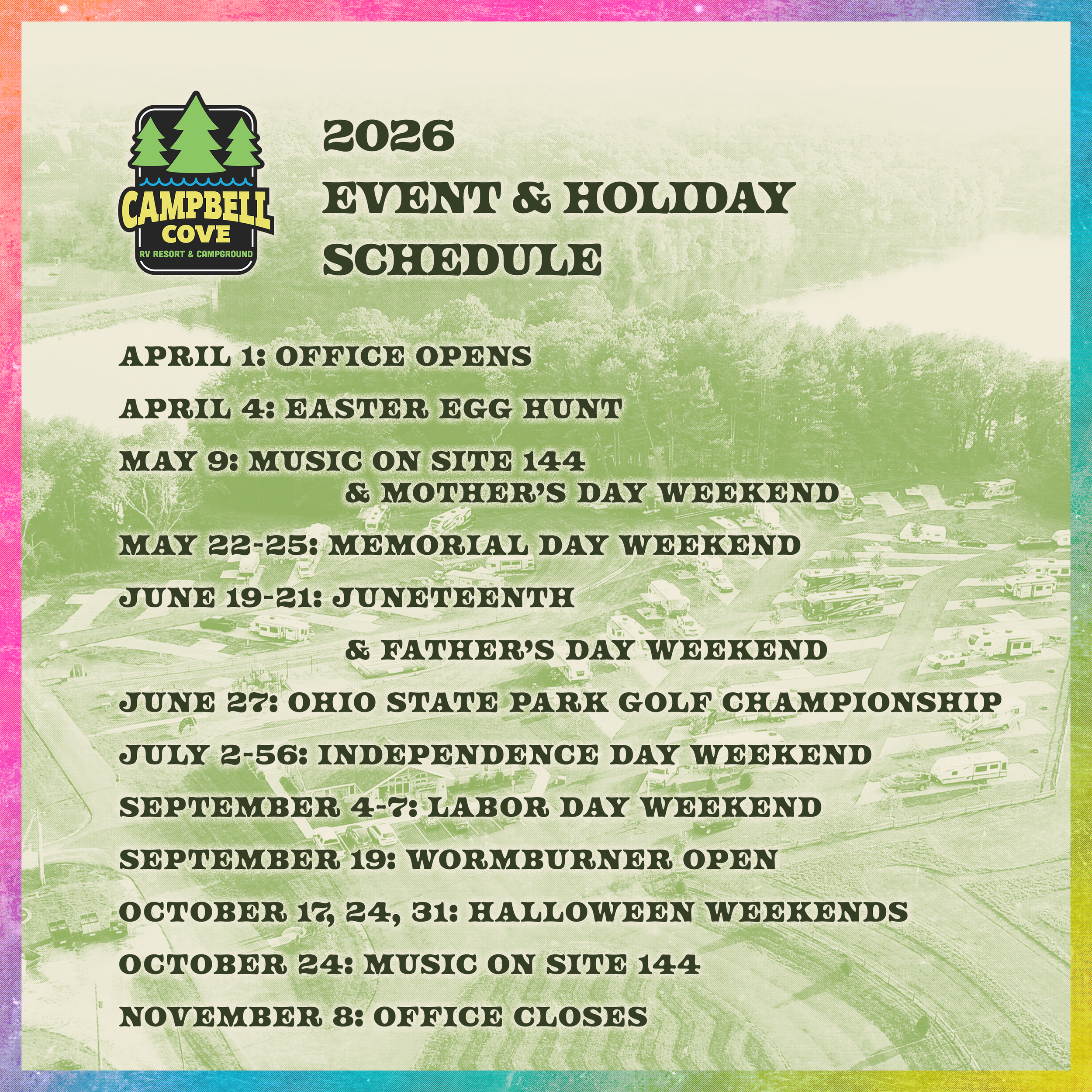 Campbell Cove RV Resort & Campground has been locally owned for over 50 years now, first by the Campbell Family, and now by the Shaw Family since 2019. Roger & Kathy Shaw and their children’s families are all life long residents of the Hocking Hills, all living within 3 miles of Campbell Cove, as the crow flies. It is no uncommon occurrence to see our families at the playground, on the beach, riding bikes or devouring an ice cream on the patio, and we hope our love for this campground shines through!
